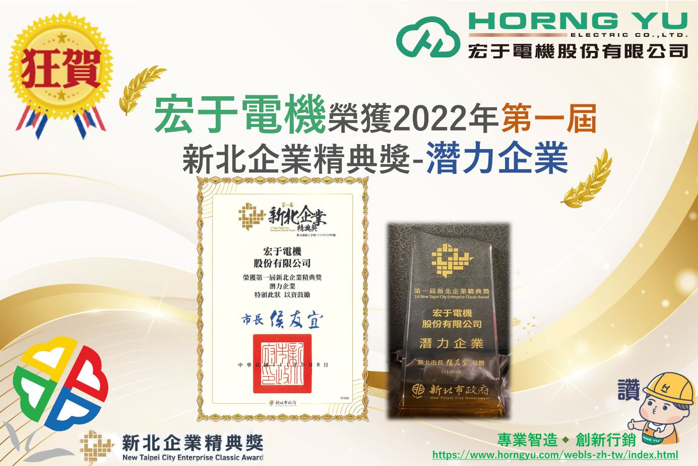 恭喜宏于電機股份有限公司榮獲第一屆新北企業精典獎-潛力企業