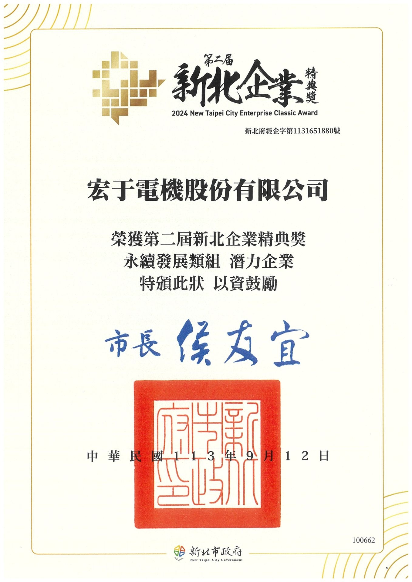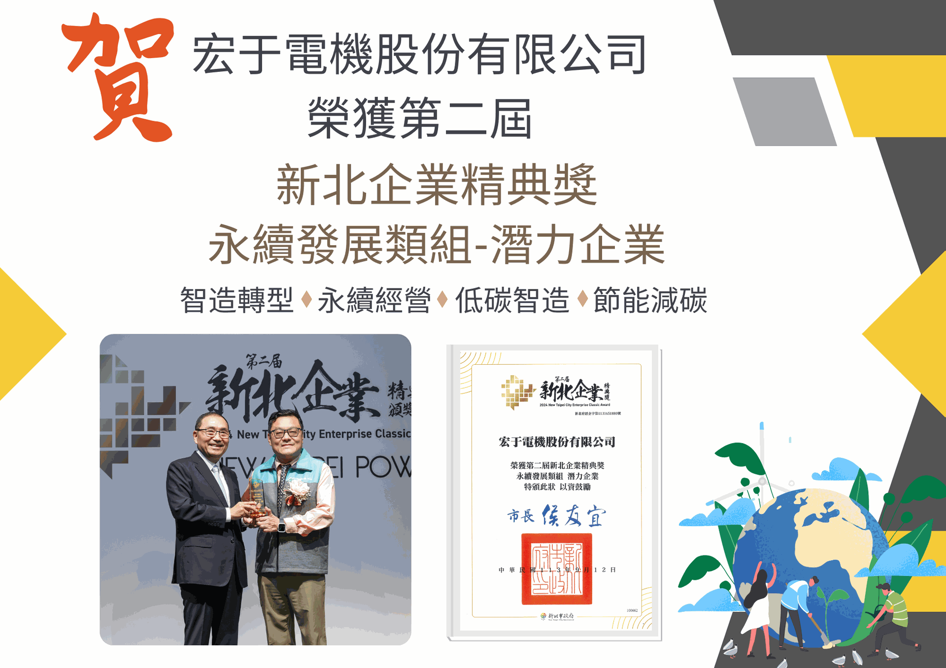 #宏于電機 #新北企業精典獎 #永續發展類組 #潛力企業 #新北市政府 #新北市政府經濟發展局