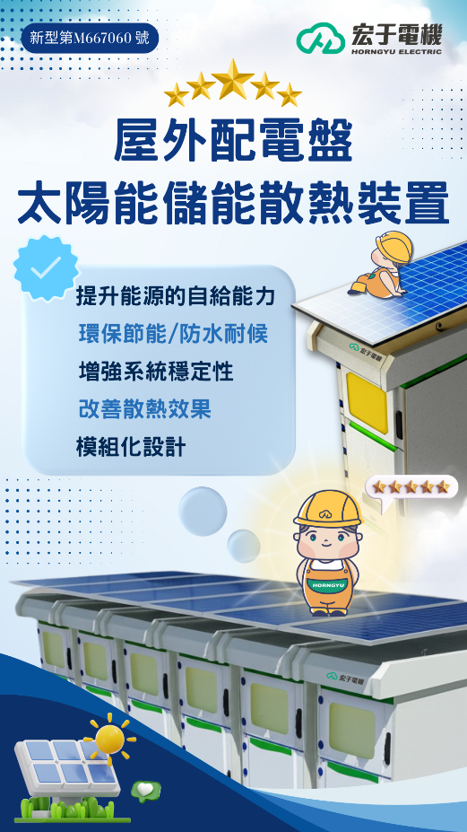 「宏于電機屋外配電盤太陽能儲能散熱裝置榮獲專利認可」
