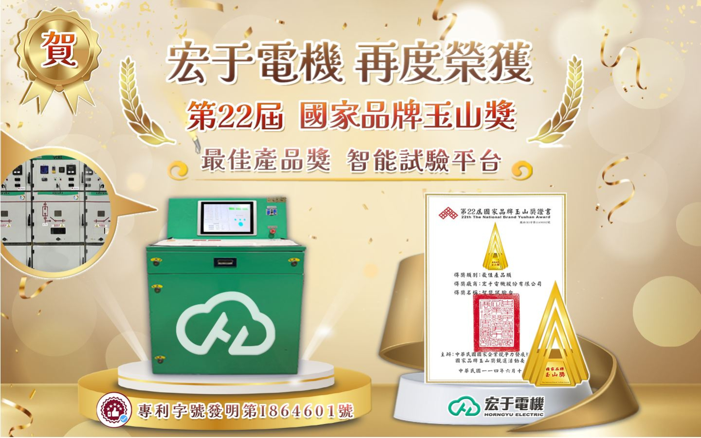 #宏于電機 #榮獲 #第22屆 #國家品牌玉山獎 #智能試驗台