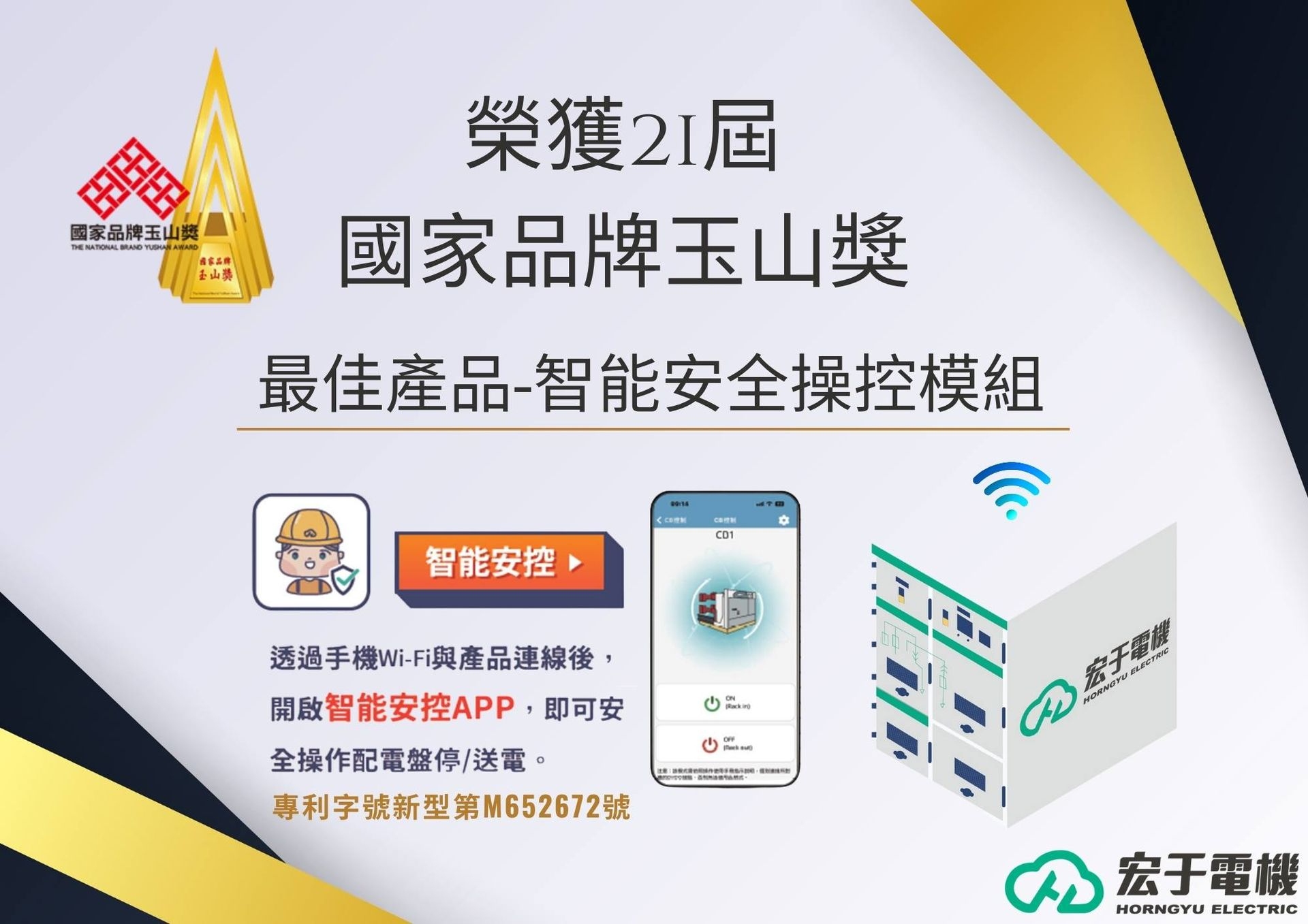 宏于電機為製作更完善電力系統,保障電力品質與操作人員安全,打造出智能安全操控模組。透過手機WIFI與產品連線後,即可遠端操作配電盤停/送電,並可線上監看變電站模組狀態。#玉山獎 #最佳產品 #宏于電機 #智能安全操控模組
