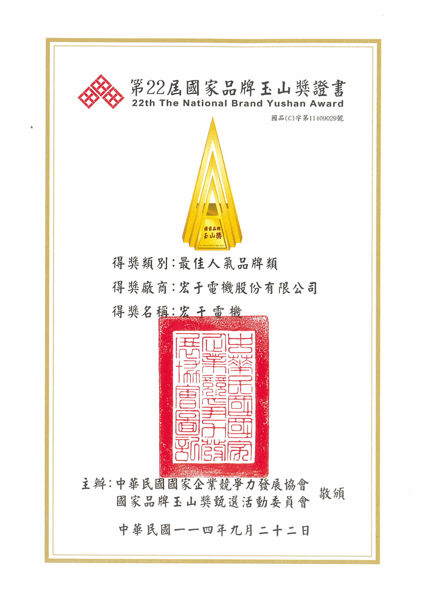 #宏于電機 #智能電網 #智能配電盤 #國家品牌玉山獎 #最佳人氣品牌獎