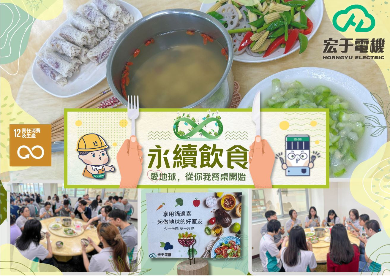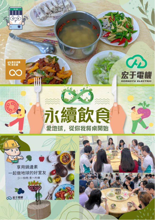 實踐ESG,從「吃」開始為響應4月22日世界地球日,宏于電機積極推動永續飲食,提倡選擇更環保、健康的飲食方式,我們希望減少碳足跡與食物浪費,為地球盡一份心力。在這一天,我們邀請同仁一同品嚐素食料理,提升對環保的意識,並從日常生活中的小行動做起,讓對地球更友善的選擇成為習慣。 每一餐的選擇,都是實現永續的力量,讓我們一起用行動為地球加分!#世界地球日#永續飲食#實踐ESG#素食選擇#減少碳足跡#食物浪費#綠色生活#地球友善#永續生活