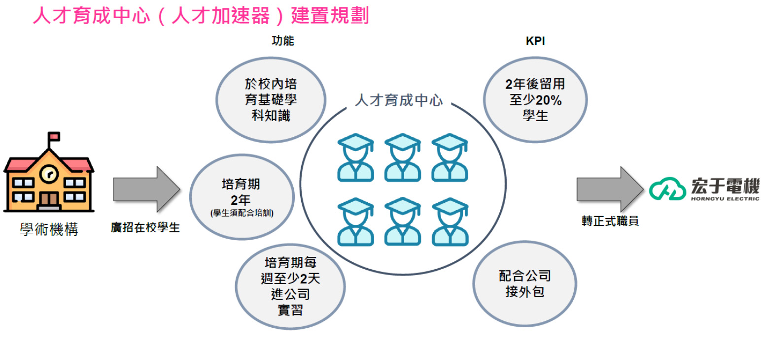 - 與學校合作成立「人才育成中心」,提供為期2年結合理論與實務的培育計畫與實習。