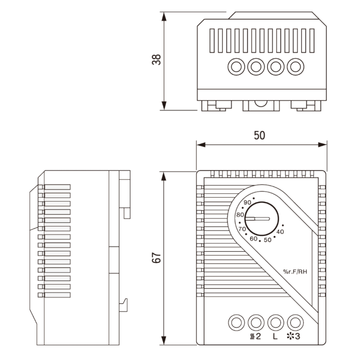 - 多功能控制:可同時控制除濕機、加熱器、風扇或警示裝置。